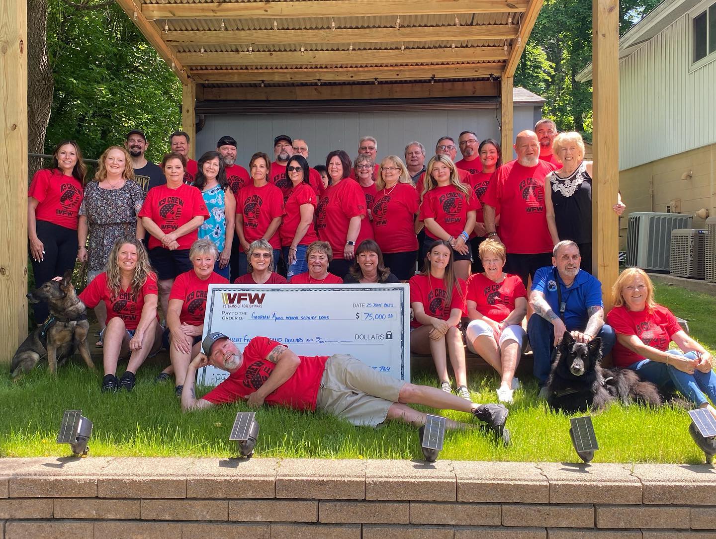 On June 23, 2023, Guardian Angels CAO, Sylee Gibson and Founder and CEO, Carol Borden traveled to VFW Post #764 with future Service Dog, Bucco to receive the donations raised.
